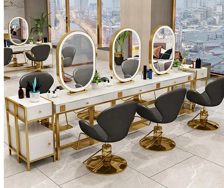 Product Name: Barber Shop Espelho De Mesa De Mármore Net Celebridade Salão De Beleza Espelho Mesa Salão De Beleza Especial Espelho Com Luz Integrada