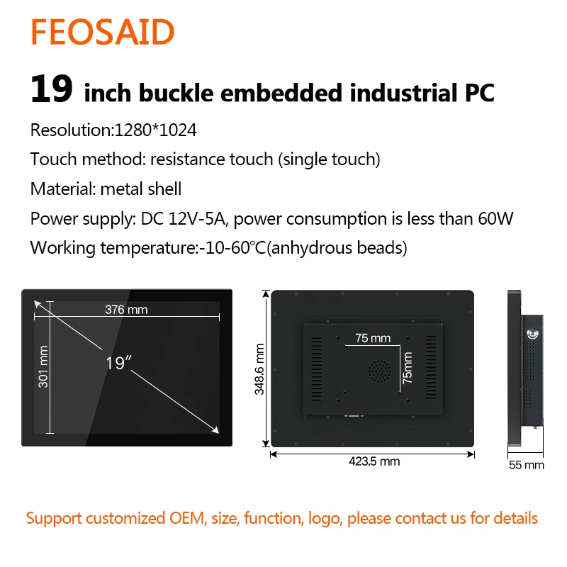 Product Name: Feosaid 19 "mini Pc Industrial Da Tabuleta Aio, Computador Do Pc Da Tabuleta Com Tela Táctil Capacitivo 4gb Arm 64gb Sdd Resolução 1280x1024