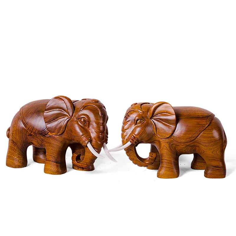 Product Name: Shengwei De Mão Esculpida King-size Elefante Africano Pêra Ornamentos Um Par De Desktops High-end 47 Cm Longo